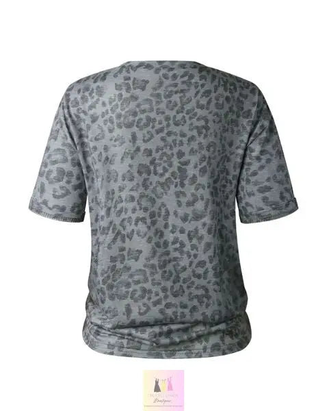 Round Neck Leopard Vintage Tee for Women – Soft Knit, Tie – Front, Multiple Sizes | Trendy Casual Wear