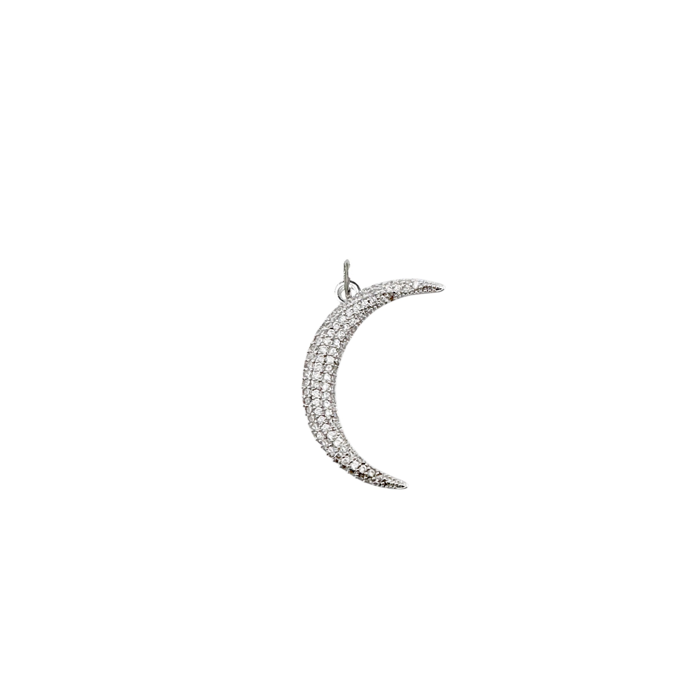 Pavé Moon Charm – Celestial Pendant in Gold, Silver, Black Diamond, Rose Gold & Gunmetal for Necklaces, Bracelets & Earrings