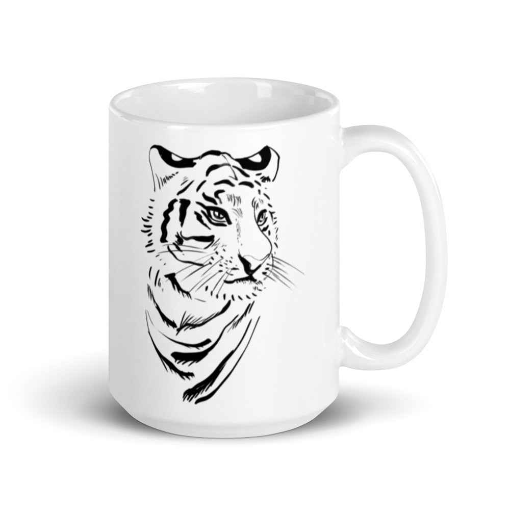 Tiger – White Glossy Mug – Black Year of the Tiger | 11oz & 15oz Sizes, Dishwasher & Microwave Safe, Full – Wrap Tiger Design