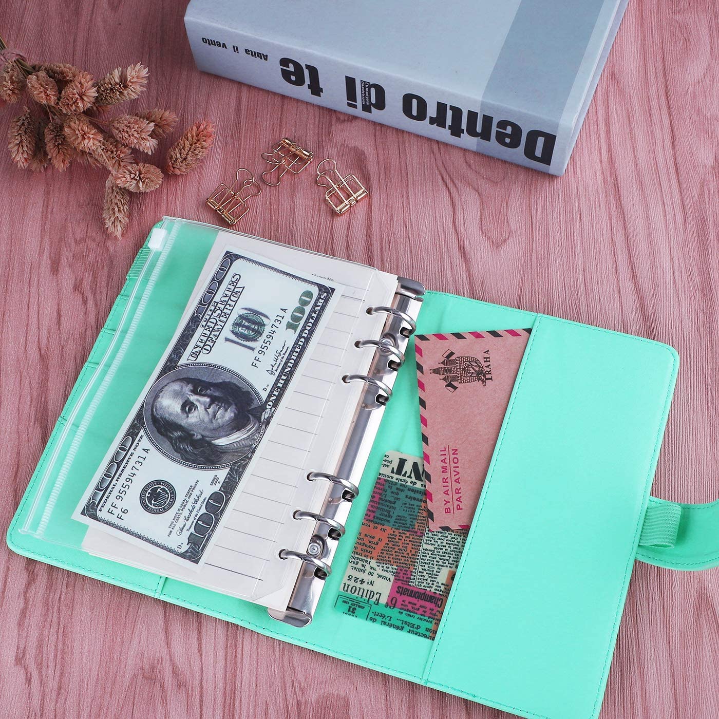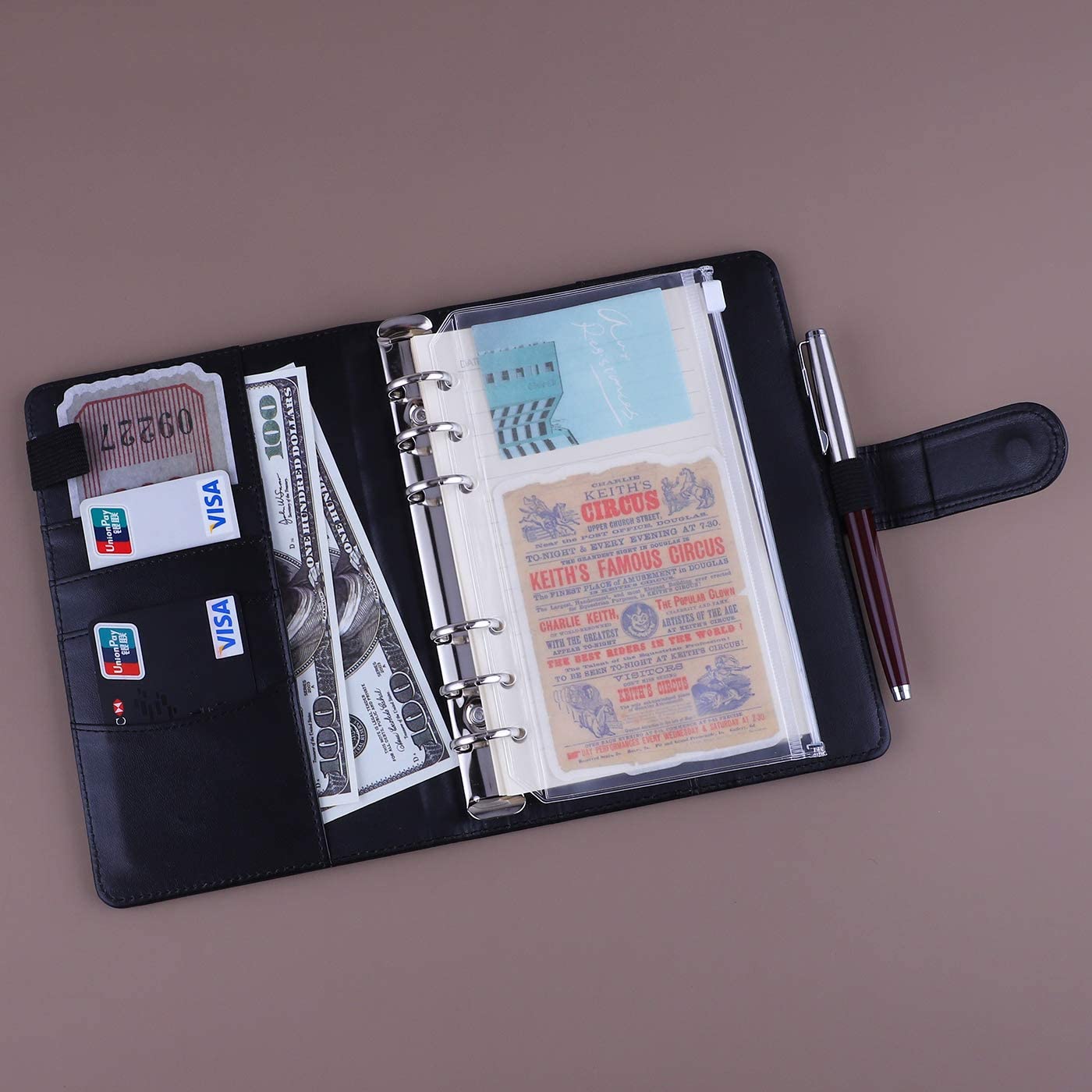 The binder comes with several useful features. It has a strong magnetic buckle closure that keeps your contents secure. There’s an integrated pen loop for on – the – go writing and clear plastic pockets for storing cash, tickets, or receipts. Its compact size, approximately 15 cm (height) × 10–12 cm (width) × 2–3 cm (thickness), makes it easily portable and suitable for fitting in your purse, briefcase, or desk drawer.
