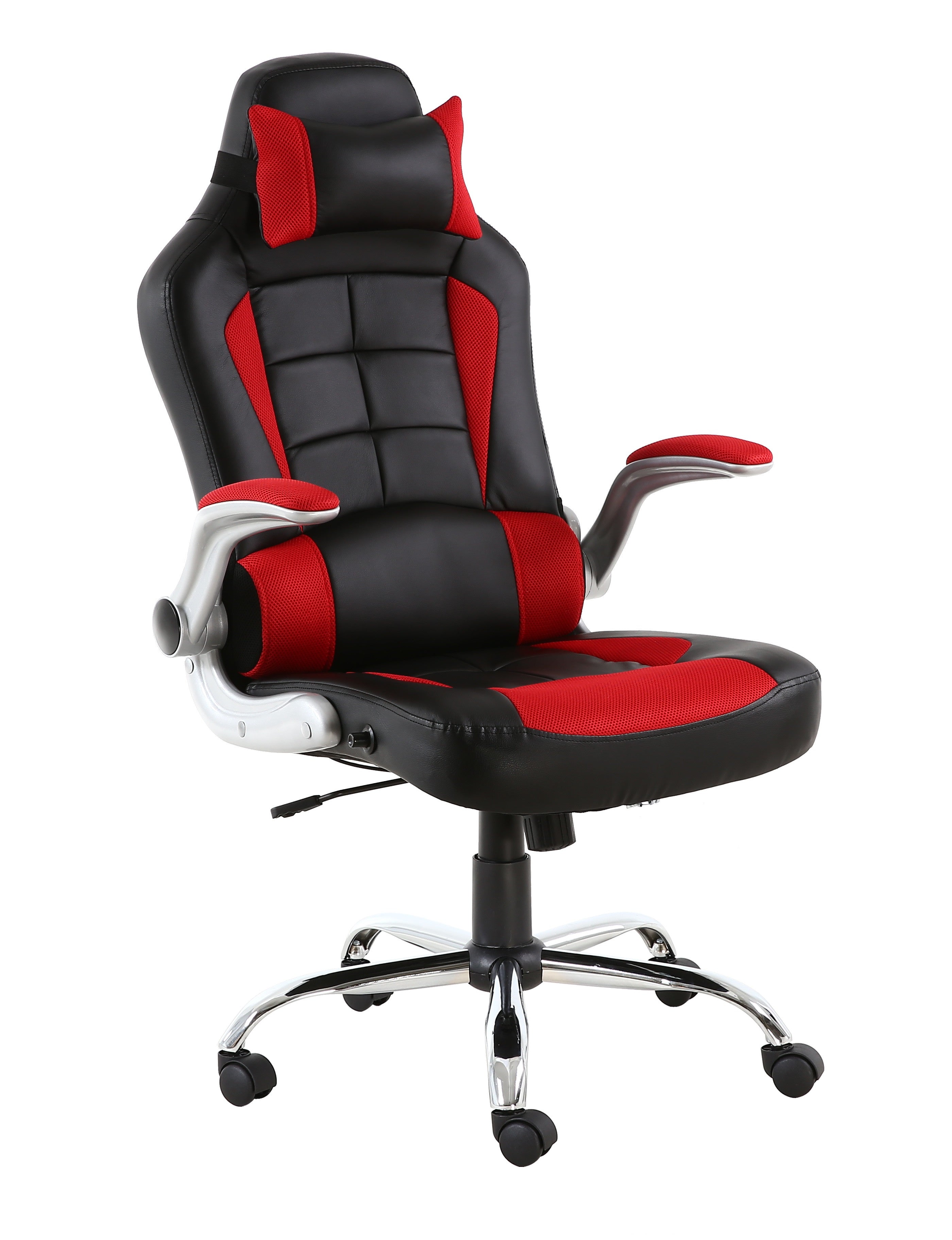 | Armrests | Adjustable in height/tilt, silver metallic frames with red mesh padding |