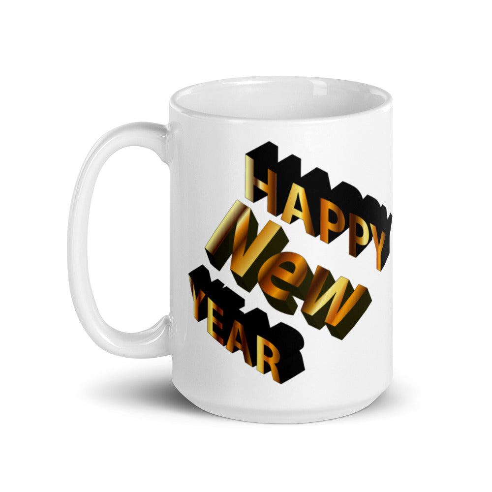 | Product Name | Happy New Year – White glossy mug – 3D Black & Gold |