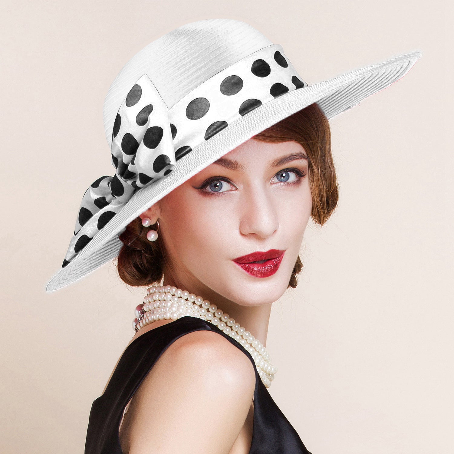 | Product Name | Wide Brim Bowknot Polka Dot Sash Kentucky Derby Hat |